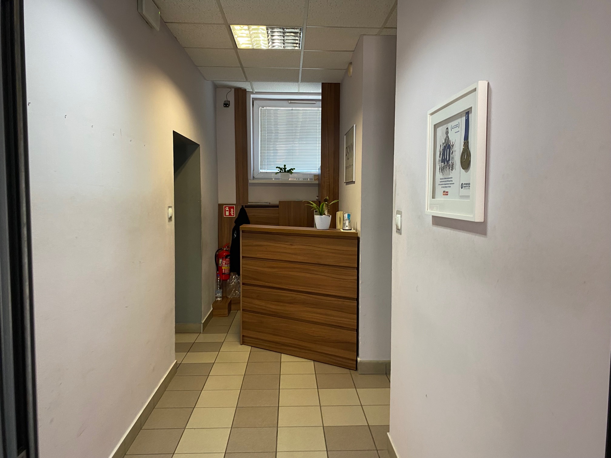 Recepcja, 3 pokoje o pow. ok. 65m²,20m², 8m², 2x toaleta, 1x pisuar, 1x kabina prysznicowa